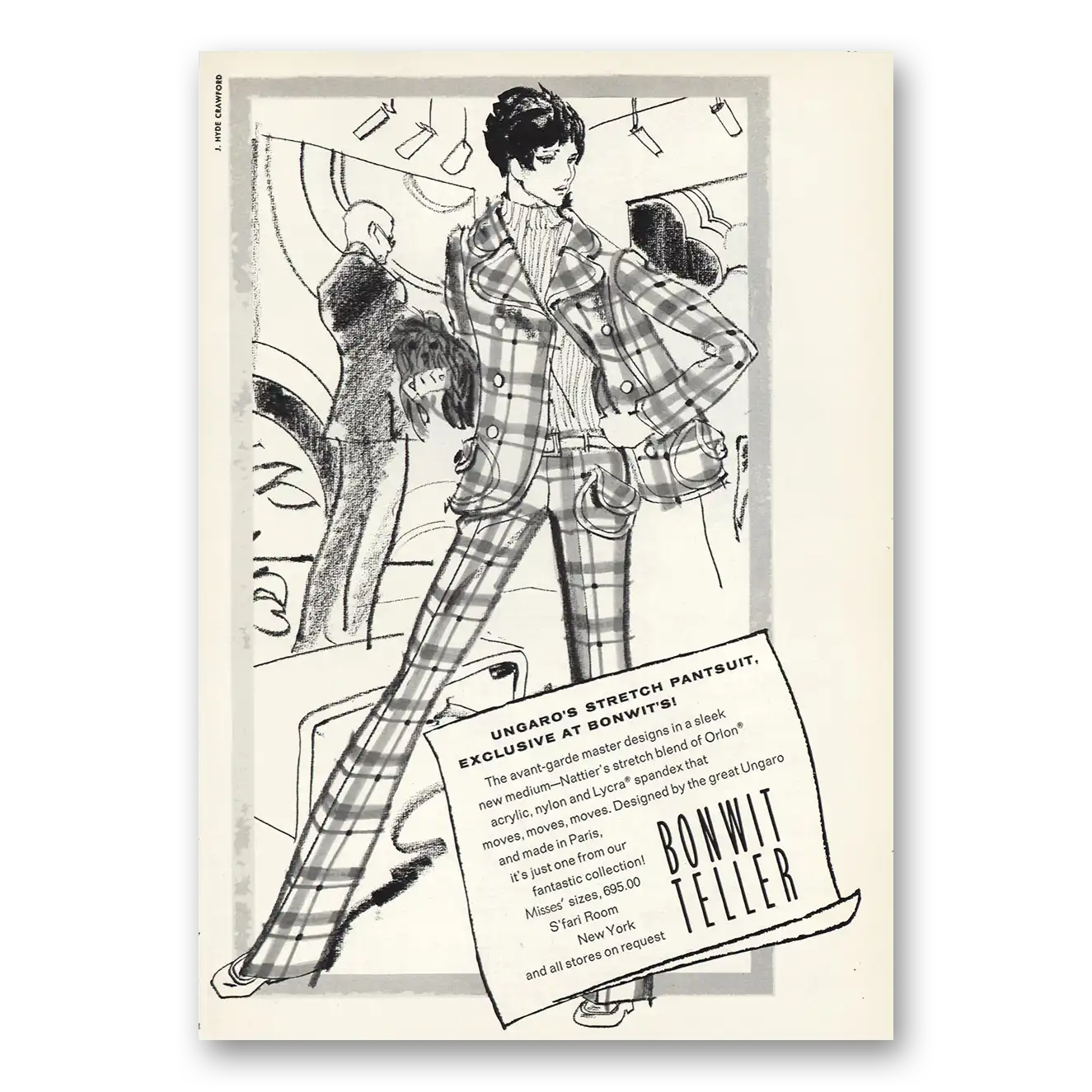 1968 Bonwit Teller Print Ad | Ungaro Stretch Pantsuit