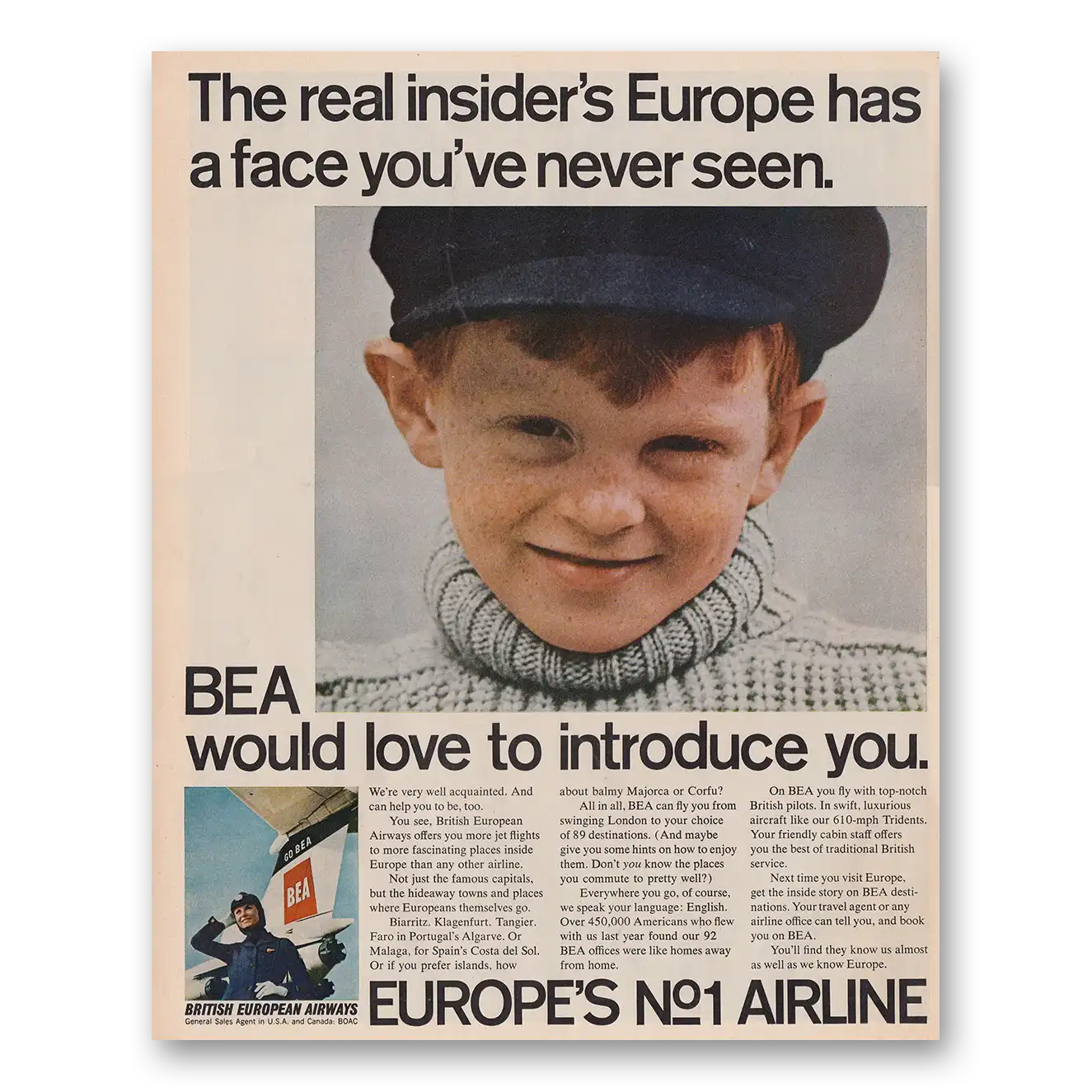This is an original 1968 British European Airways print ad published by British European Airways.