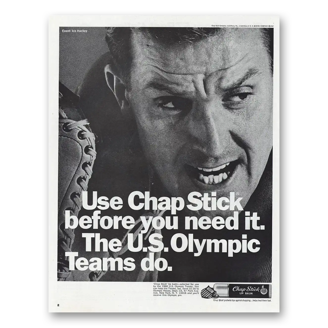 1968 Chap Stick Print Ad | Us Olympic Team