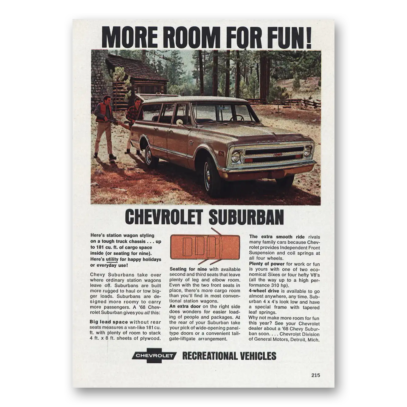 1968 Chevrolet Suburban Print Ad | More Room For Fun