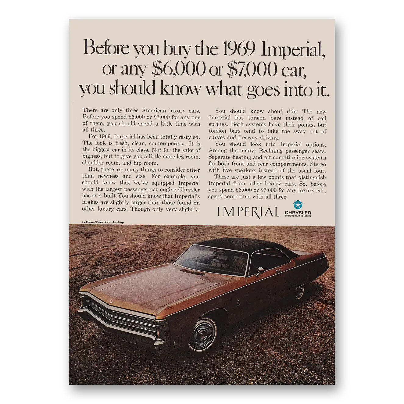 1968 Chrysler Imperial Print Ad | Buy Imperial