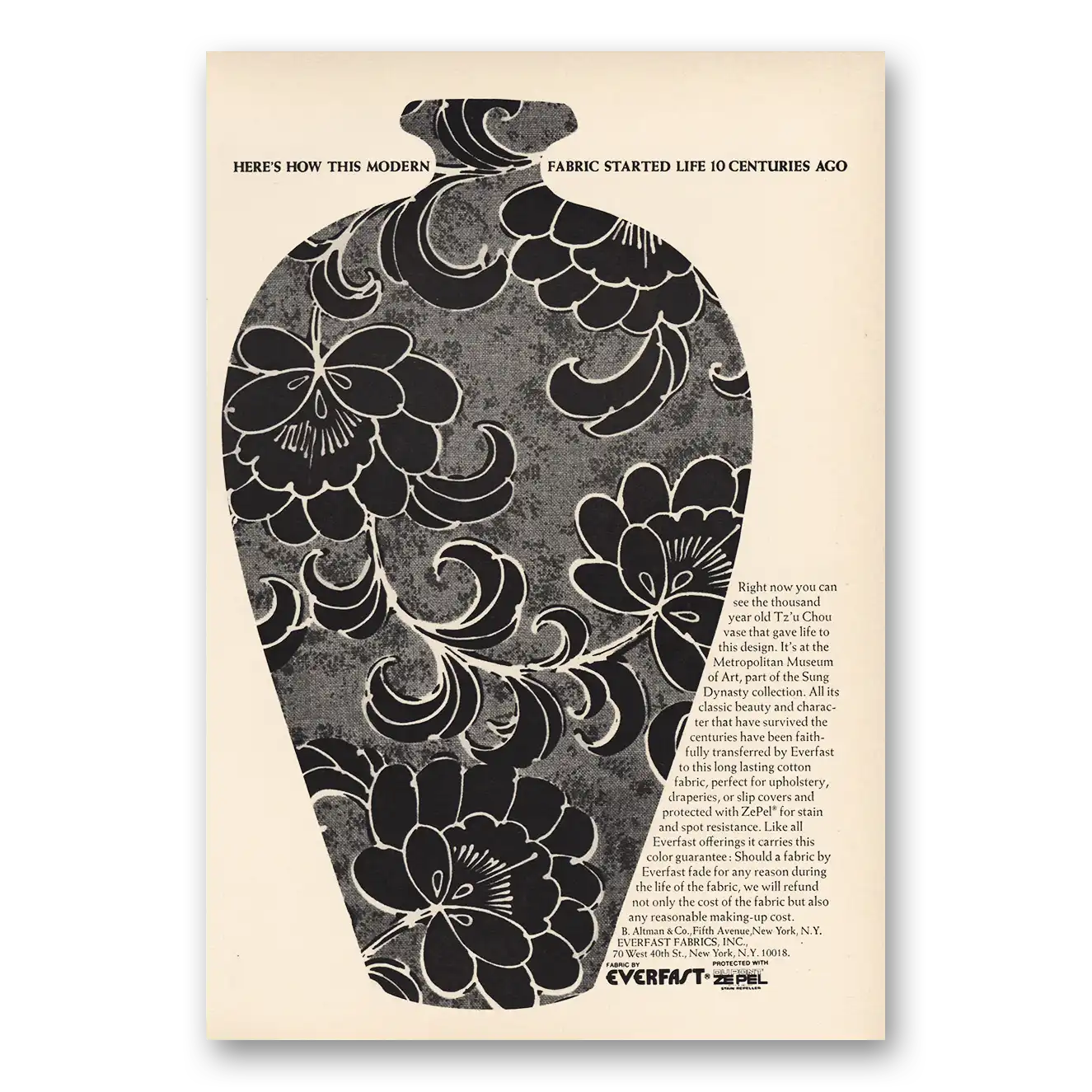 1968 Everfast Fabrics Print Ad | Modern Fabric Started 10 Centuries Ago