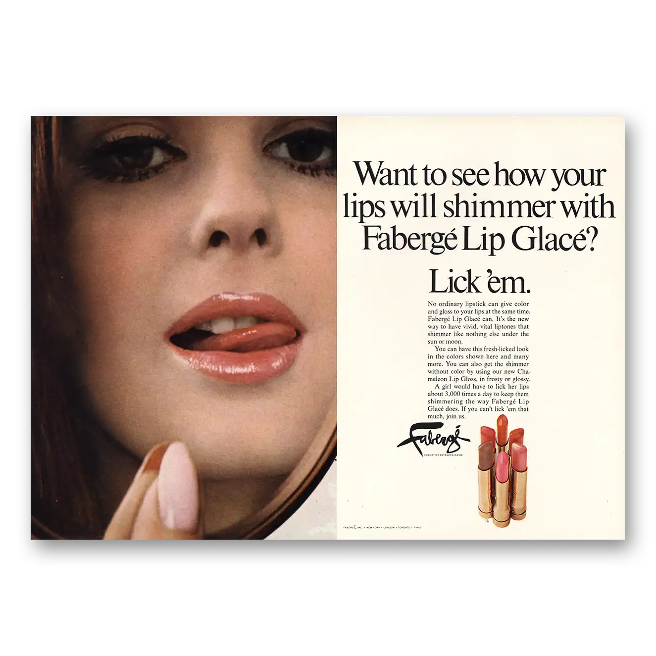 1968 Faberge Print Ad | Lips Will Shimmer Lip Glace