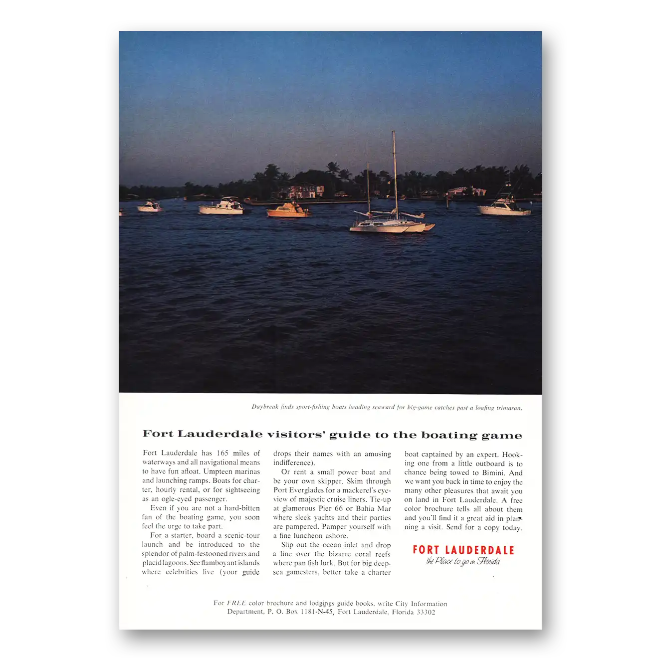 1968 Fort Lauderdale Florida Print Ad | Guide To Boating Game