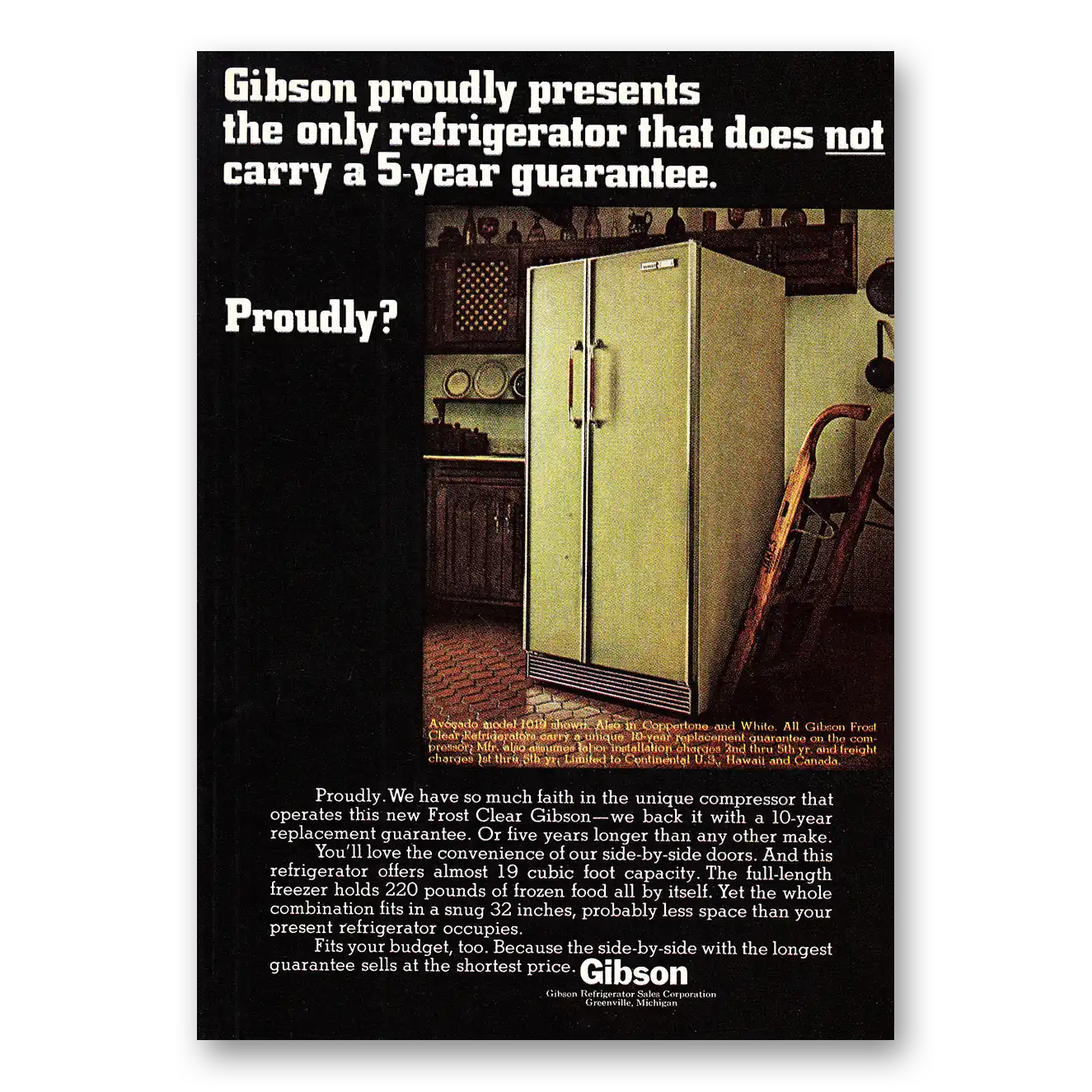 This is an original 1968 Gibson Refrigerator print ad published by Gibson Refrigerator Company.