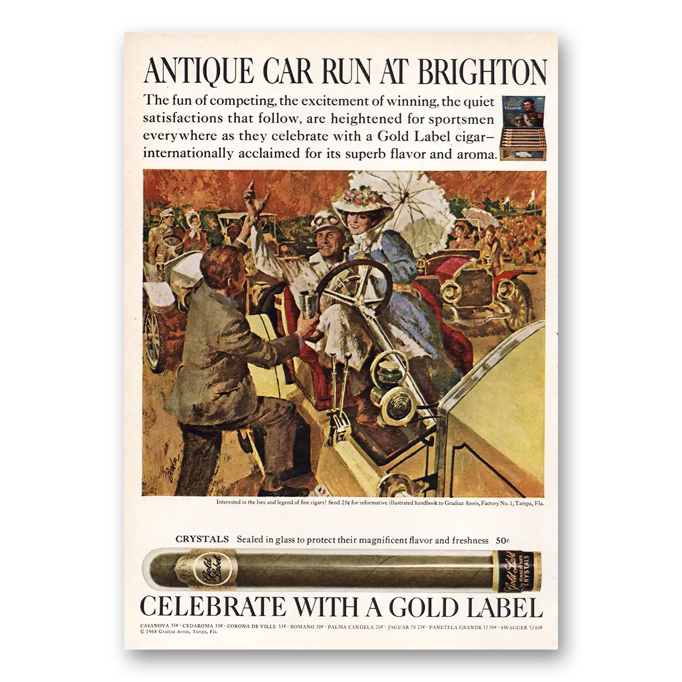 1968 Gold Label Cigars Print Ad | Antique Car Run Brighton