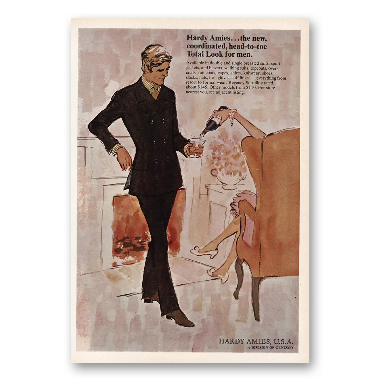 This is an original 1968 Hardy Amies USA print ad published by Hardy Amies USA.
