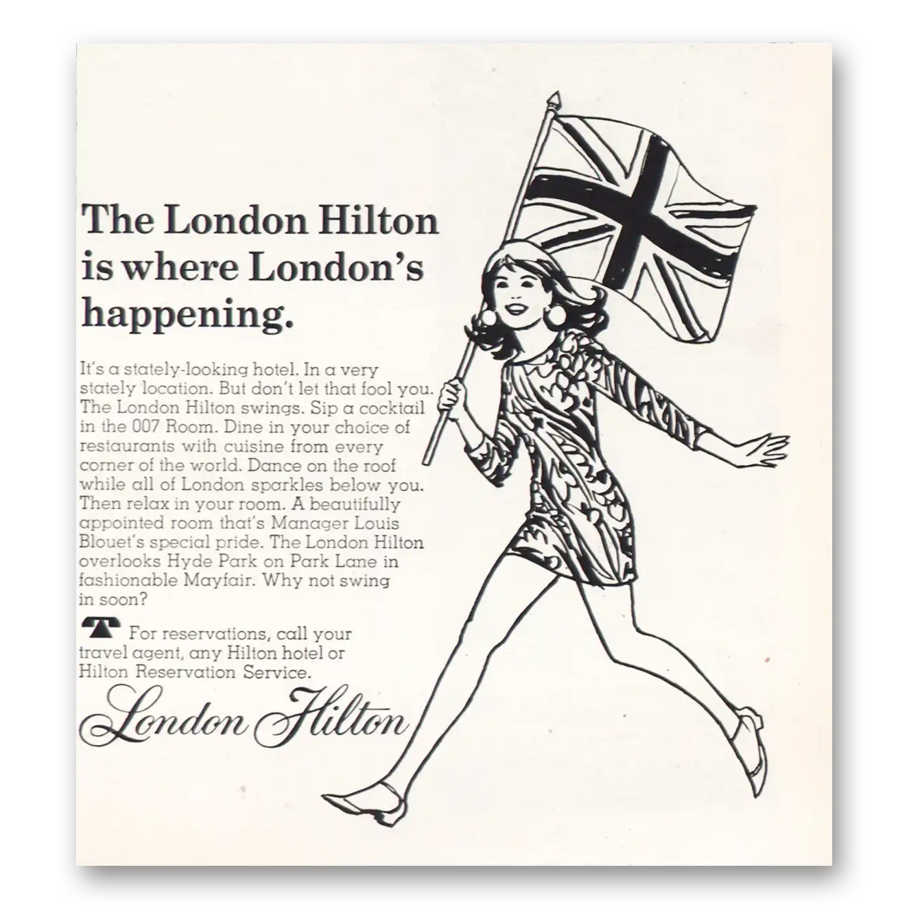 This is an original 1968 Hilton Hotels print ad published by Hilton Hotels.