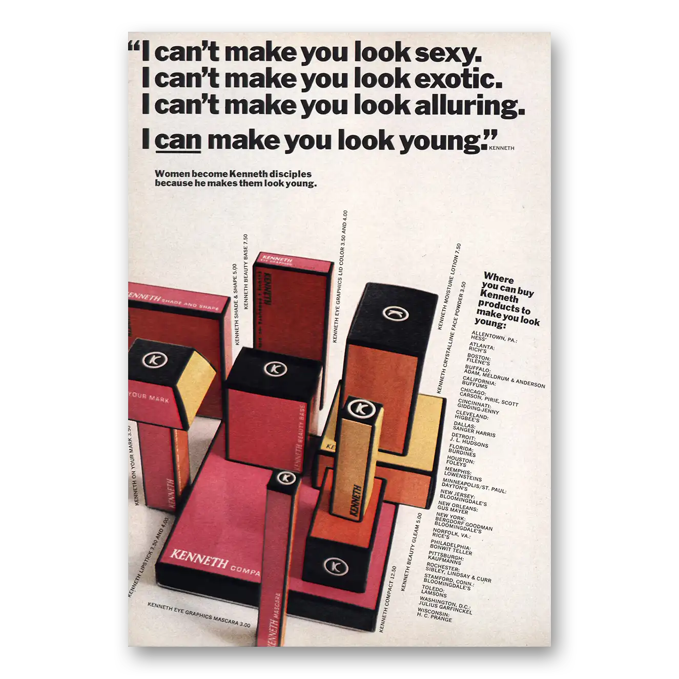 1968 Kenneth Print Ad | I Cant Make You Look Sexy