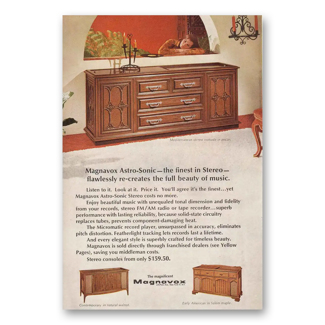 This is an original 1968 Magnavox Astro Sonic Stereo print ad published by Magnavox.