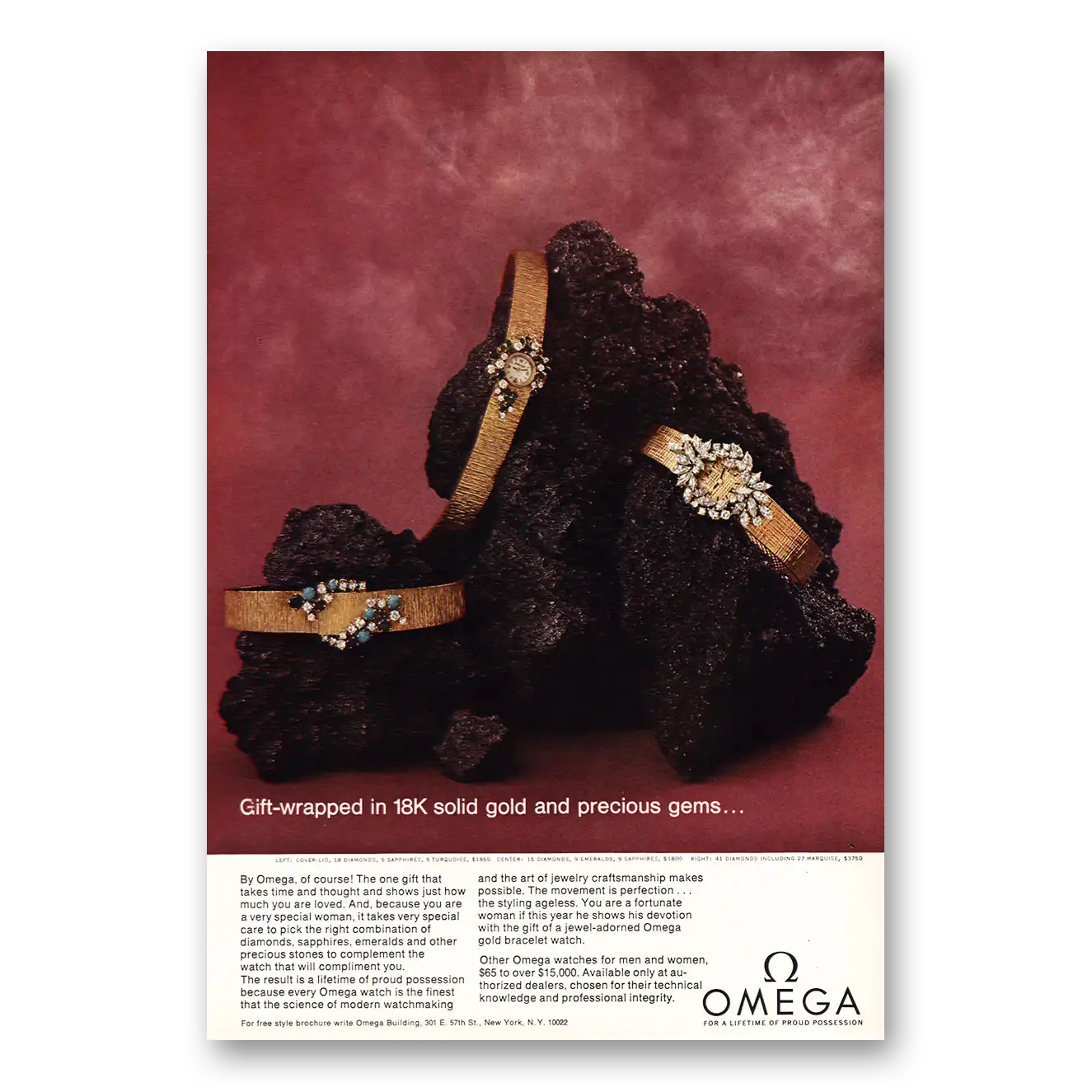 1968 Omega Watch Print Ad | 18k Solid Gold And Precious Gems1968 Omega Watch Print Ad | 18k Solid Gold And Precious Gems