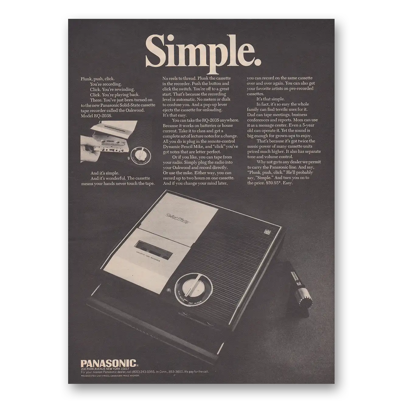 1968 Panasonic Tape Recorder Print Ad | Simple Oakwood