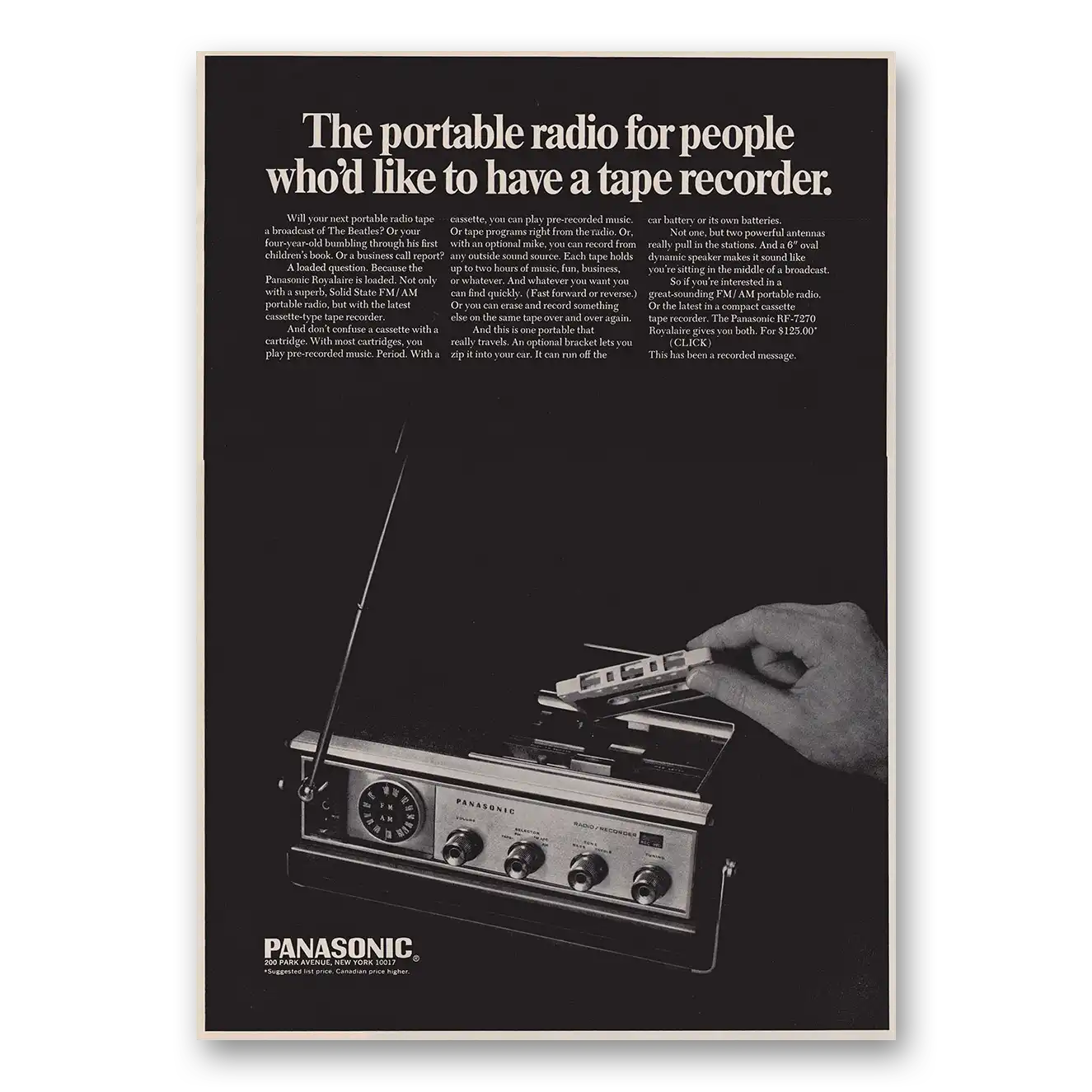 This is an original 1968 Panasonic Tape Recorder print ad published by Panasonic.