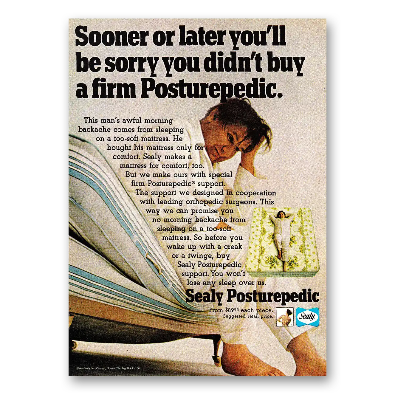 1968 Sealy Posturepedic Mattress Print Ad | Sooner Or Later