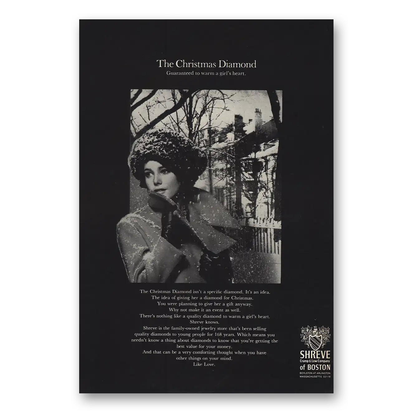 1968 Shreve of Boston Print Ad | Christmas Diamond