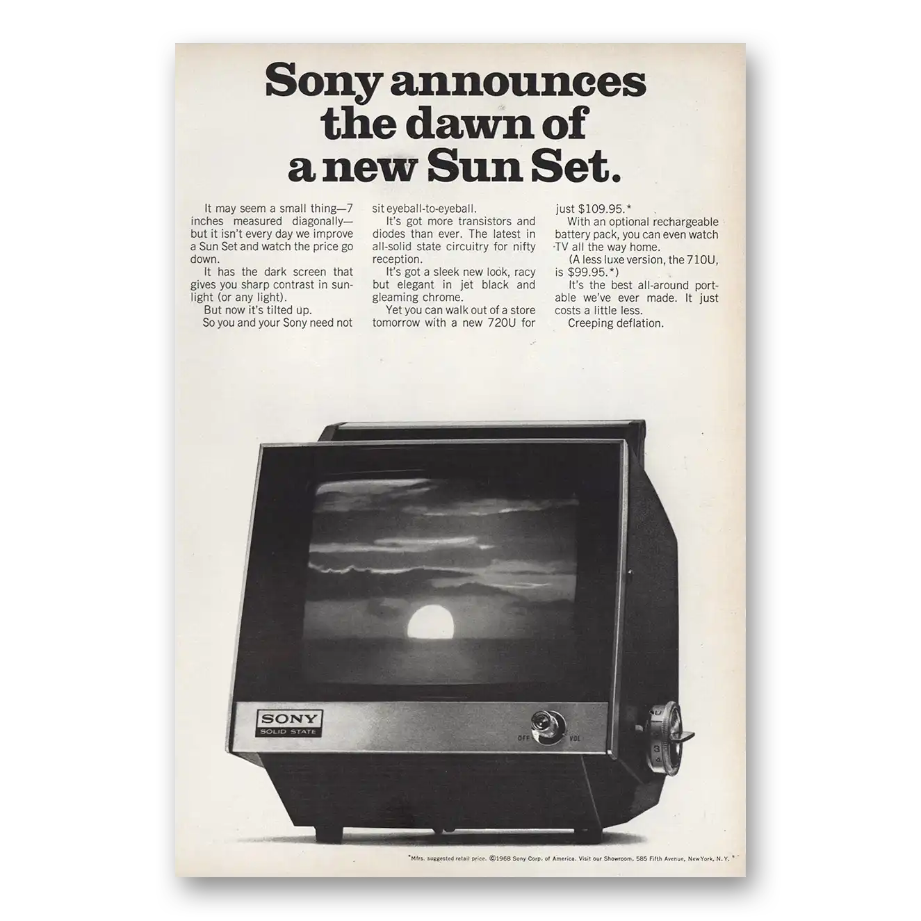 1968 Sony Television Print Ad | Dawn Of New Sun Set