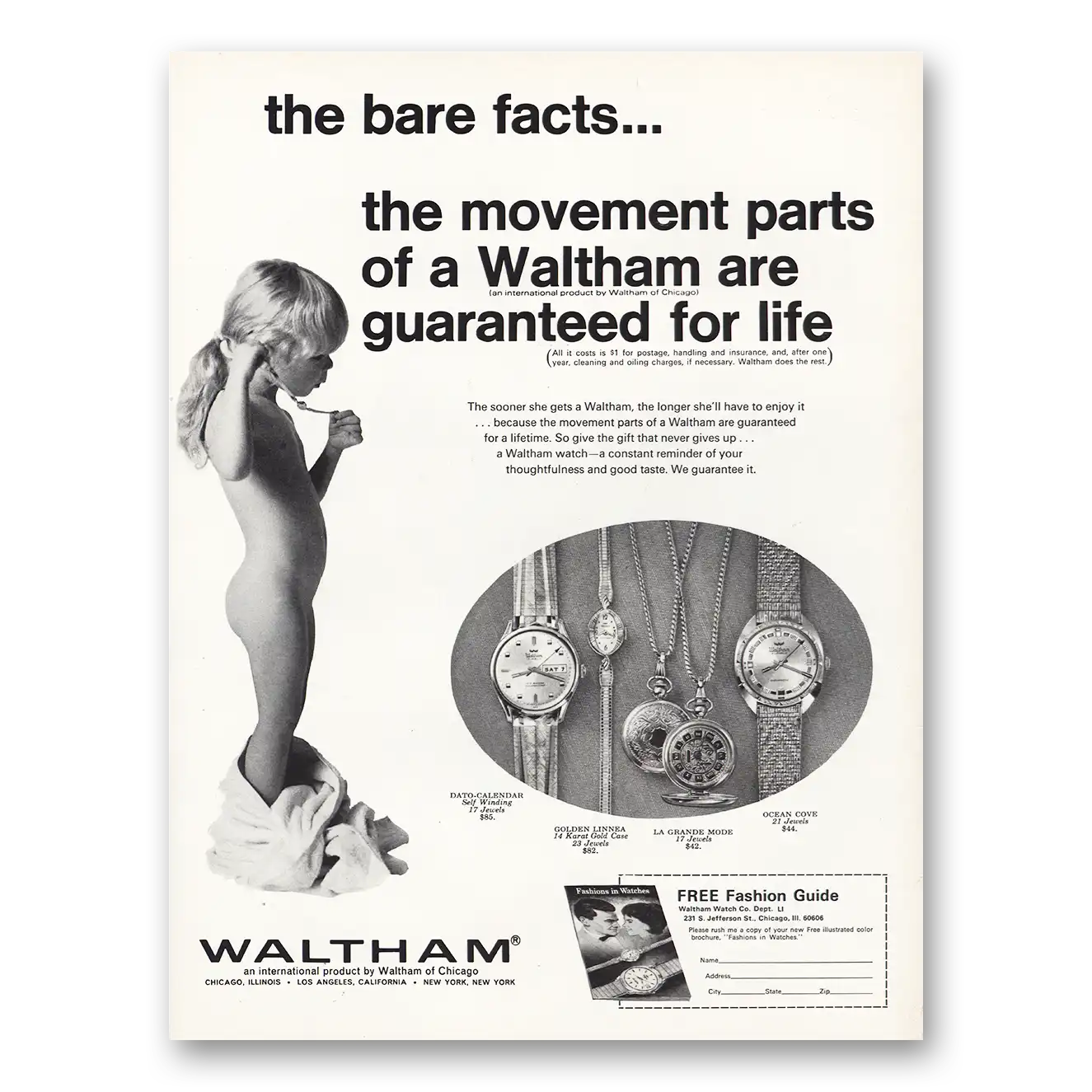 1968 Waltham Watch Print Ad | Bare Facts