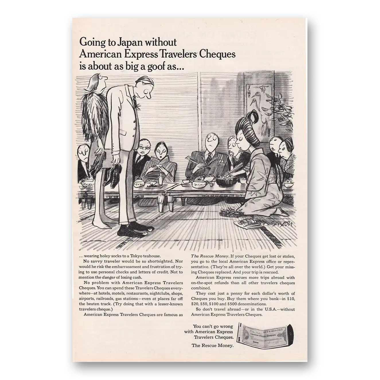 This is an original 1969 American Express Travelers Cheques print ad published by American Express.