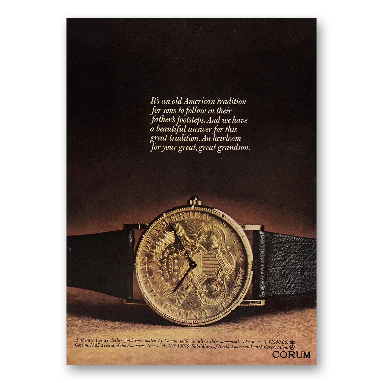 This is an original 1969 Corum Watch print ad published by Corum Watch.