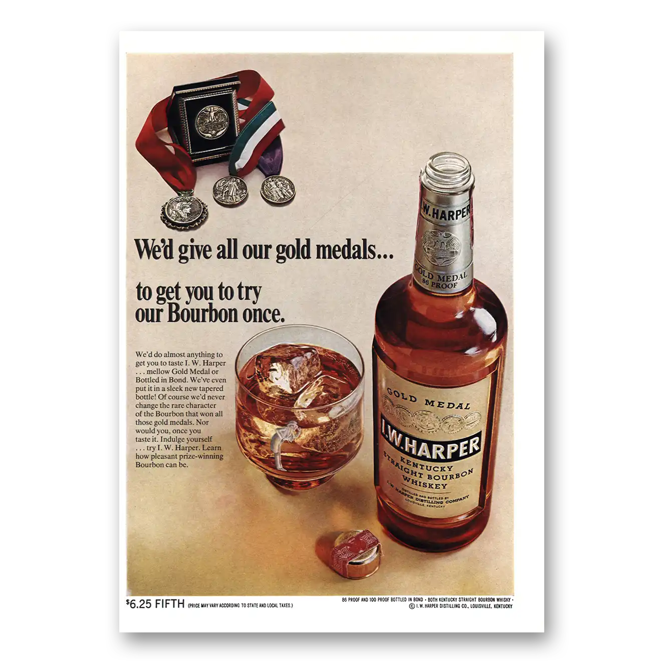1969 I W Harper Whiskey Print Ad | Gold Medals