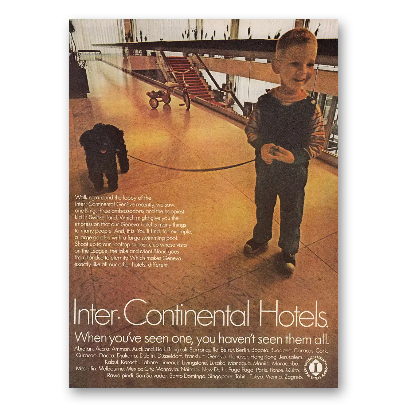 This is an original 1969 InterContinental Hotels print ad published by InterContinental Hotels.