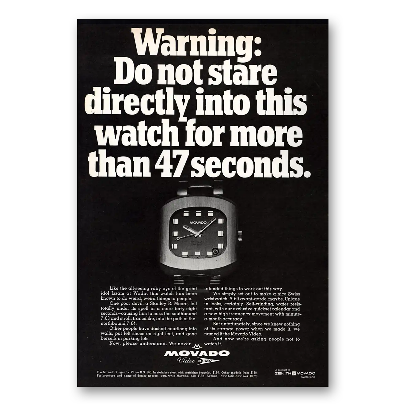 1969 Movado Watch Print Ad | Do Not Stare Directly Into This Watch