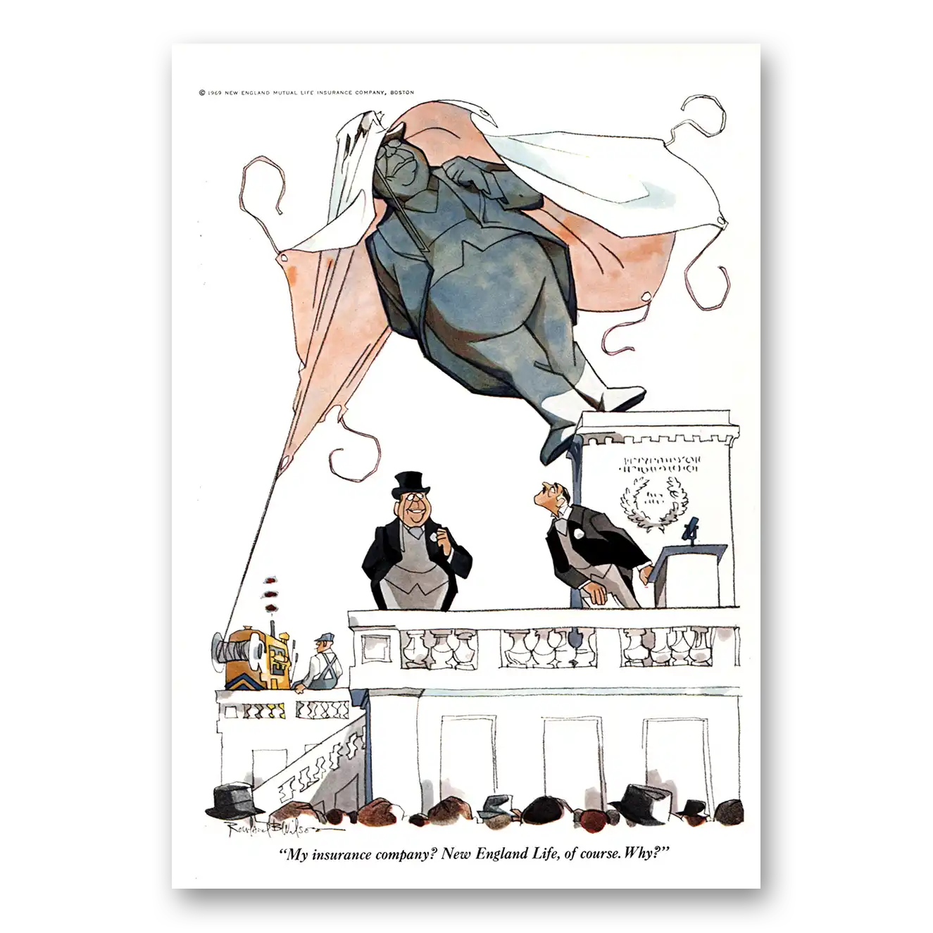This is an original 1969 New England Mutual Life Insurance print ad published by New England Mutual Life Insurance.