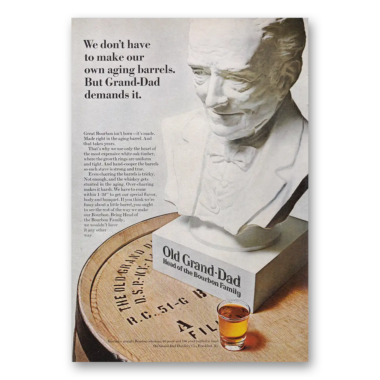 1969 Old Grand-Dad Bourbon Whiskey Print Ad | Aging Barrels