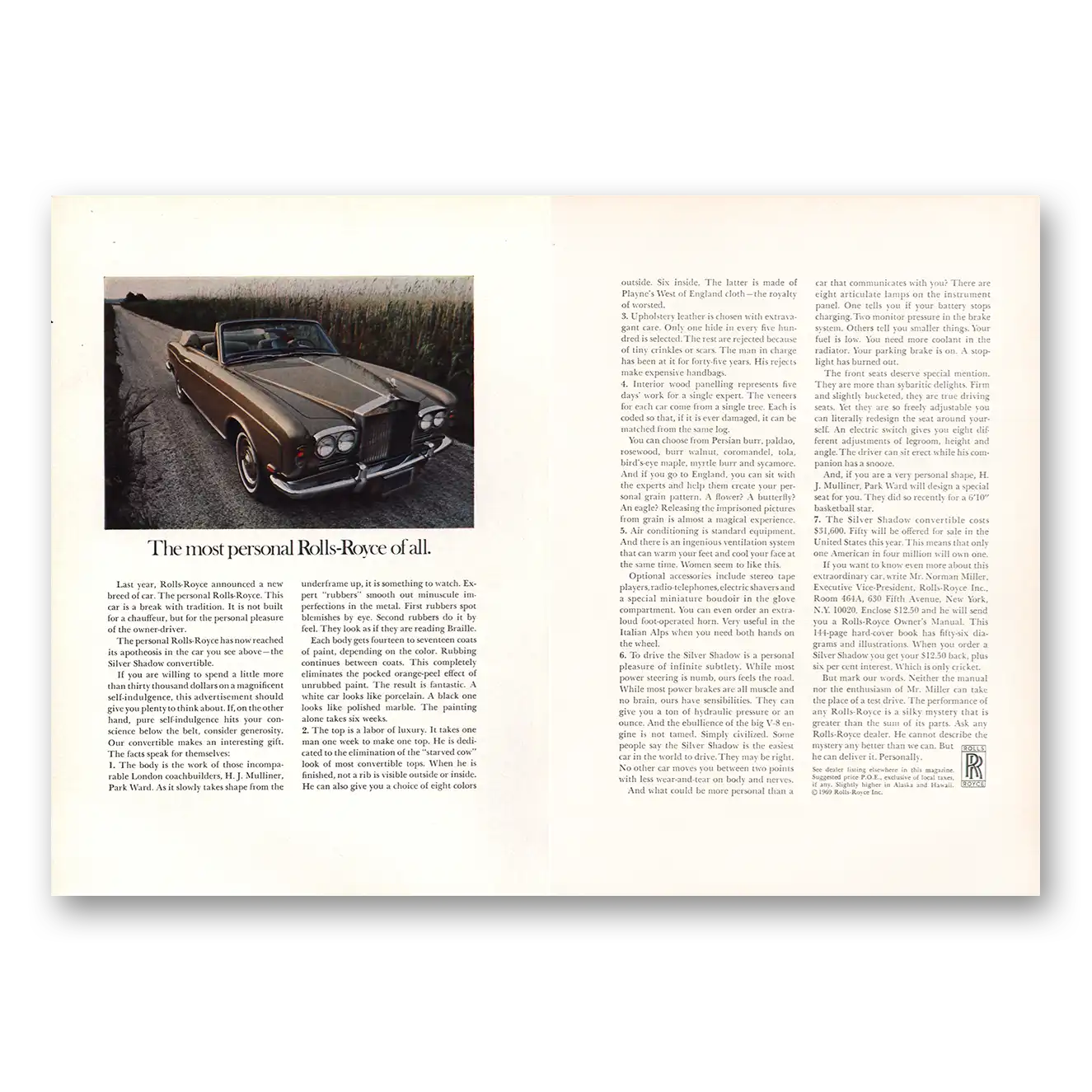 1969 Rolls Royce Print Ad | Most Personal
