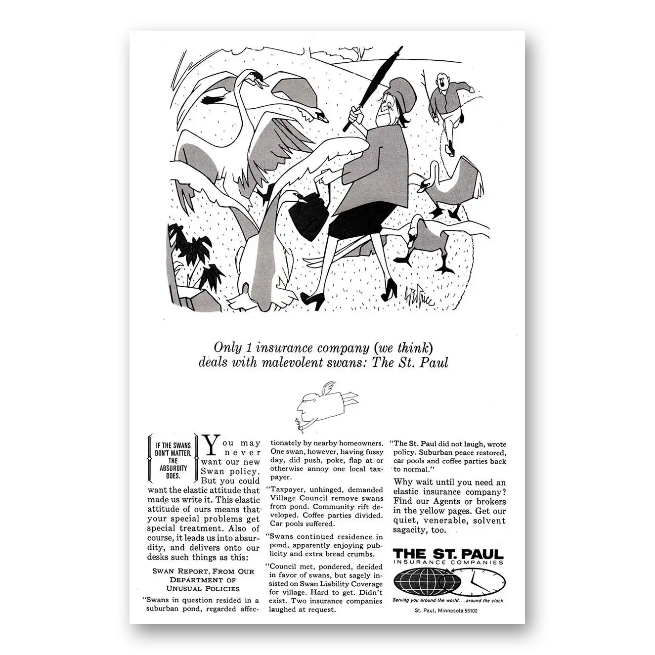 1969 St Paul Insurance Print Ad | Malevolent Swans