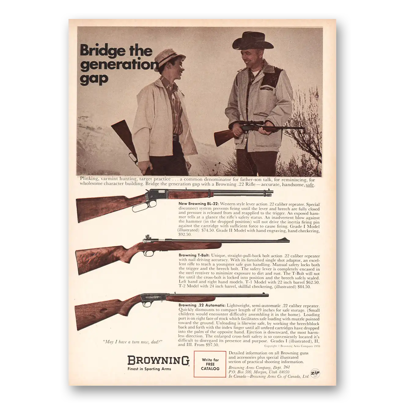 1970 Browning Arms Print Ad | Generation Gap