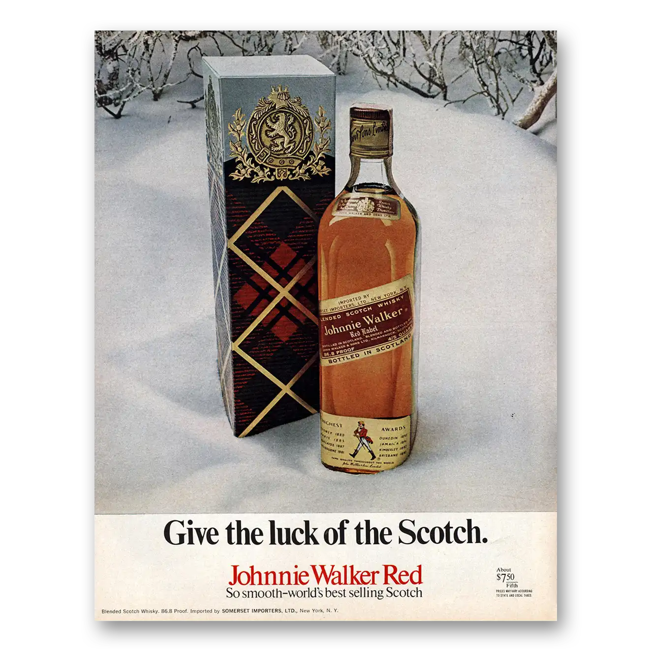 1970 Johnnie Walker Red Label Print Ad | Give Luck