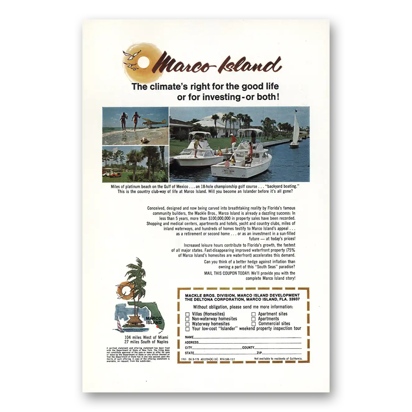 1970 Marco Island Florida Print Ad | Climates Right Good Life