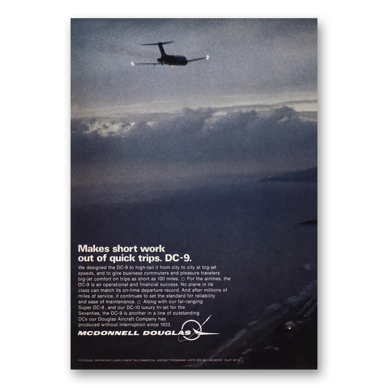 This is an original 1970 McDonnell Douglas DC9 print ad published by McDonnell Douglas.