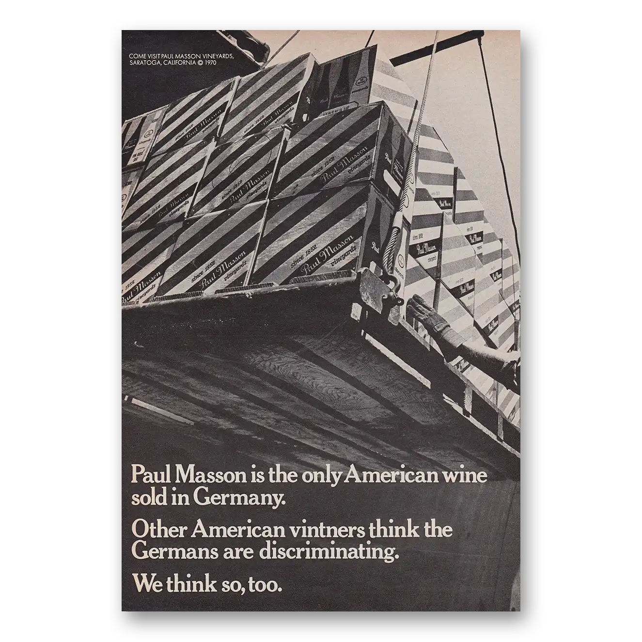 This is an original 1970 Paul Masson Wine print ad published by Paul Masson.