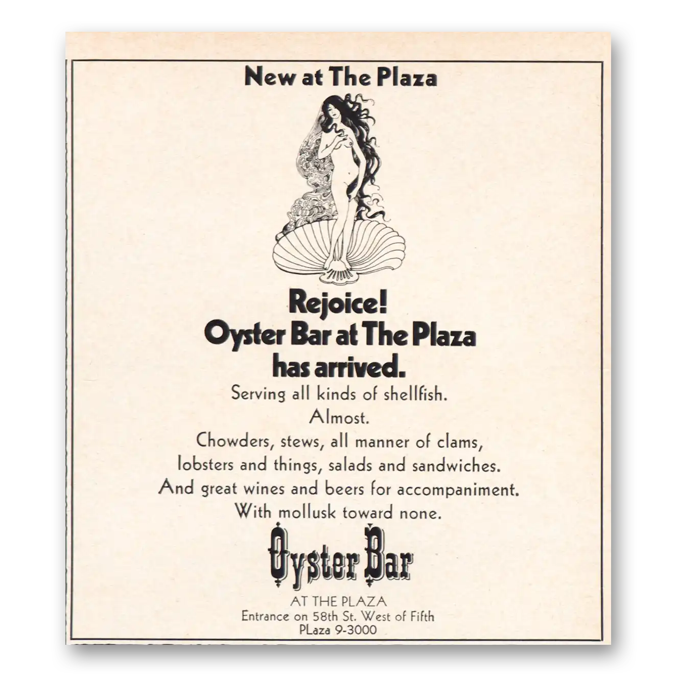 1970 Plaza Hotel Print Ad | Oyster Bar