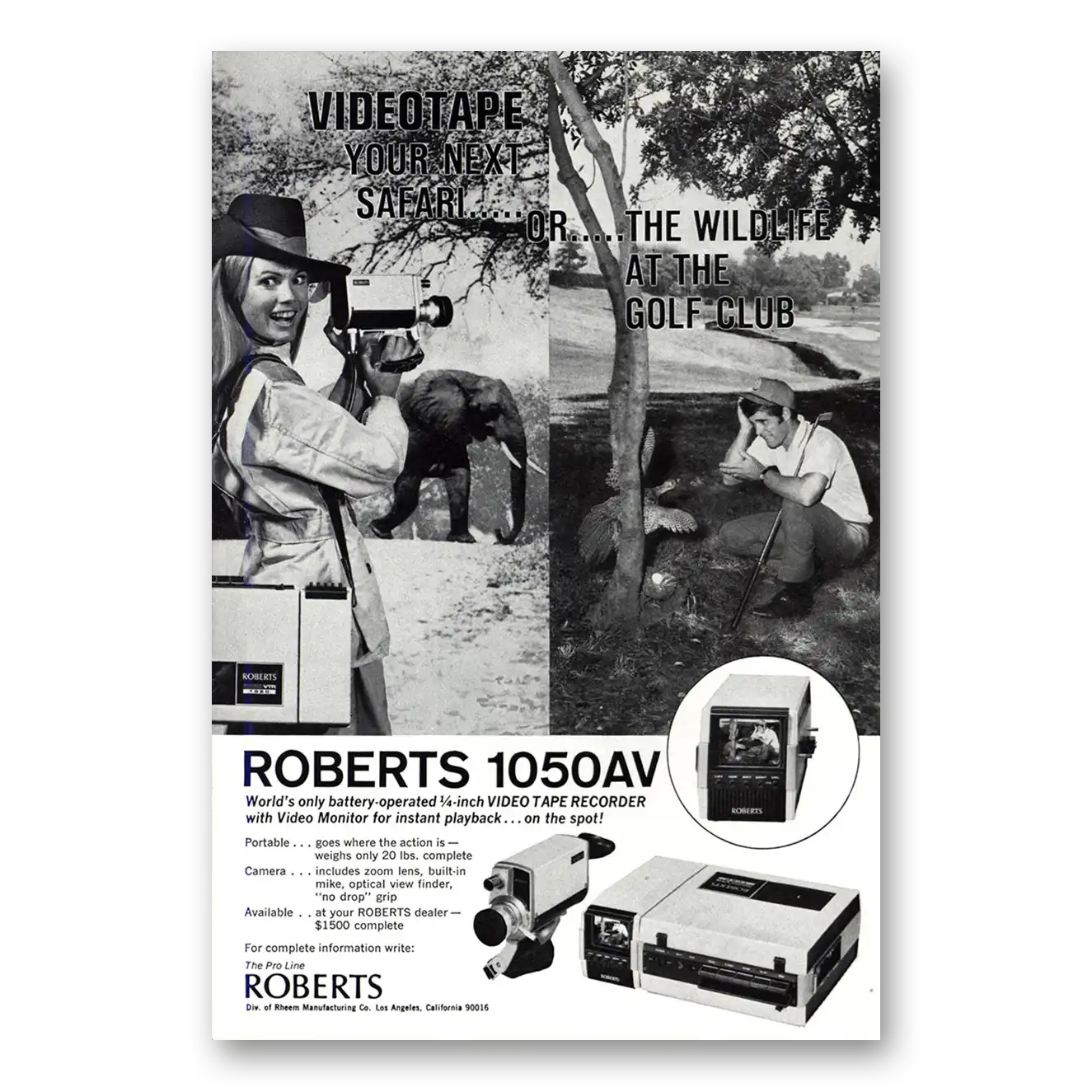 1970 Roberts Video Recorder Print Ad | Safari Or Wildlife