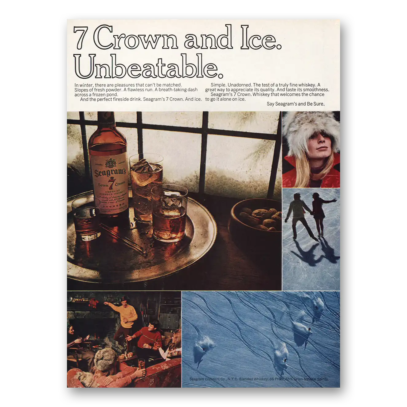 1970 Seagrams 7 Crown Whiskey Print Ad | Ice Unbeatable