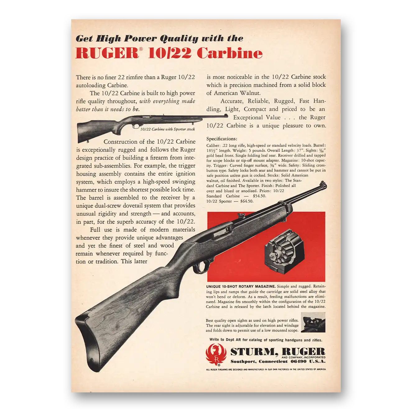 This is an original 1970 Sturm Ruger Rifles print ad published by Sturm Ruger and Company.