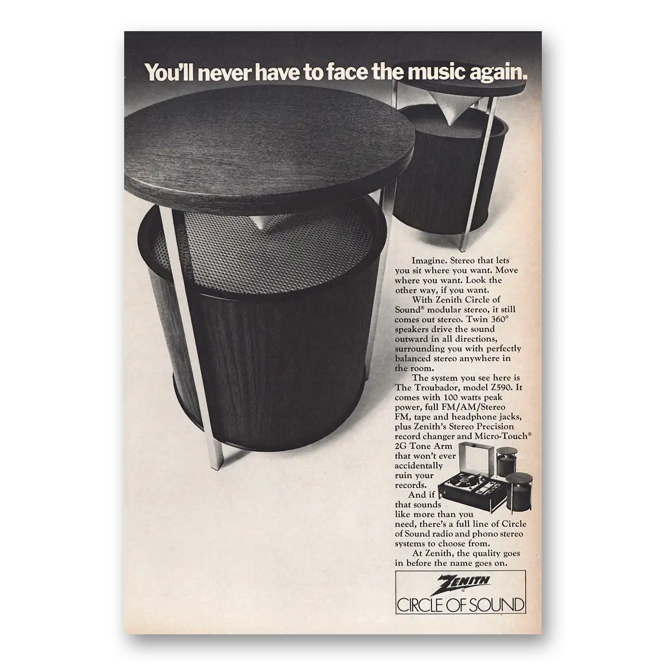 1970 Zenith Stereo Print Ad | Circle Sound