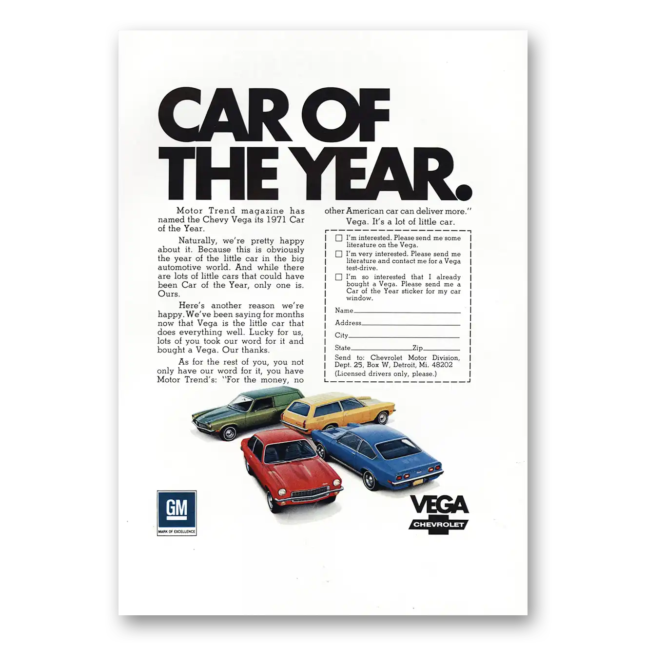 This is an original 1971 Chevrolet Vega print ad published by Chevrolet.