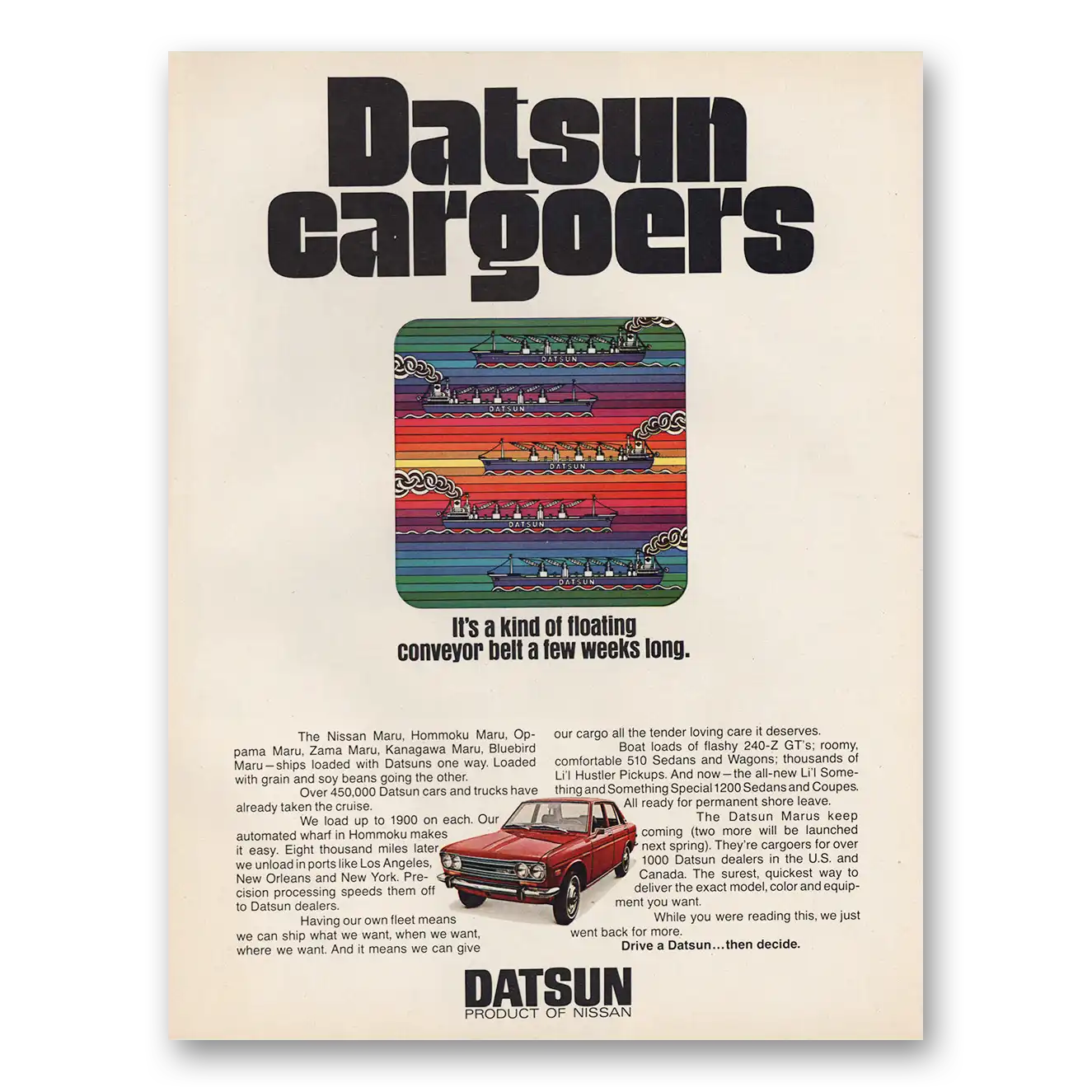 1971 Datsun Print Ad | Conveyor Belt