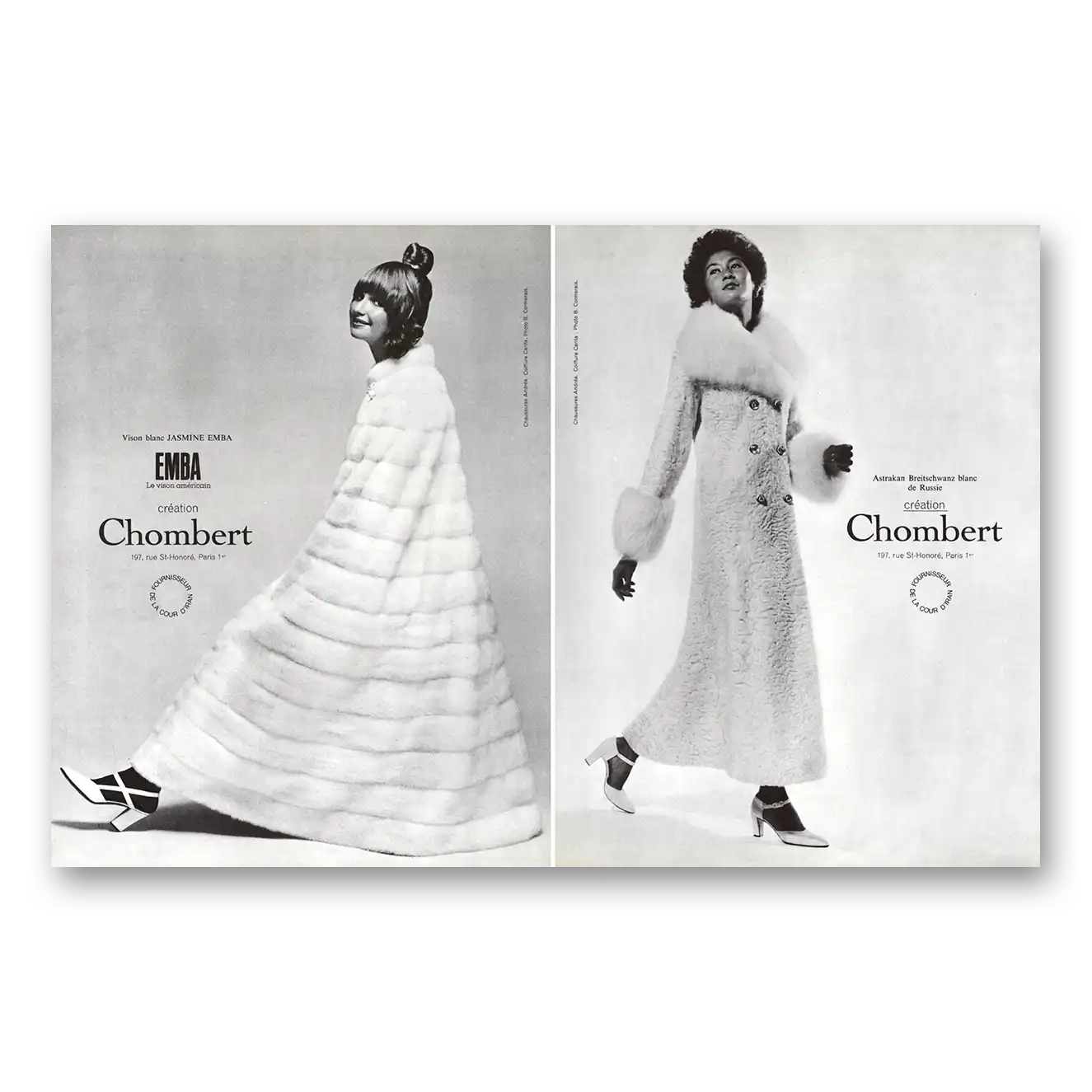 This is an original 1971 Emba Mink print ad published by Chombert of Paris.