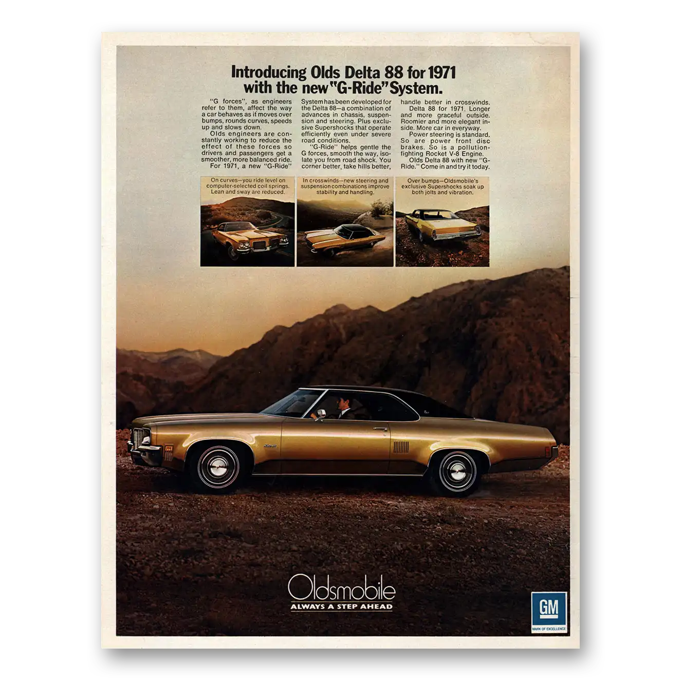 1971 Oldsmobile Delta 88 Print Ad | G Ride System