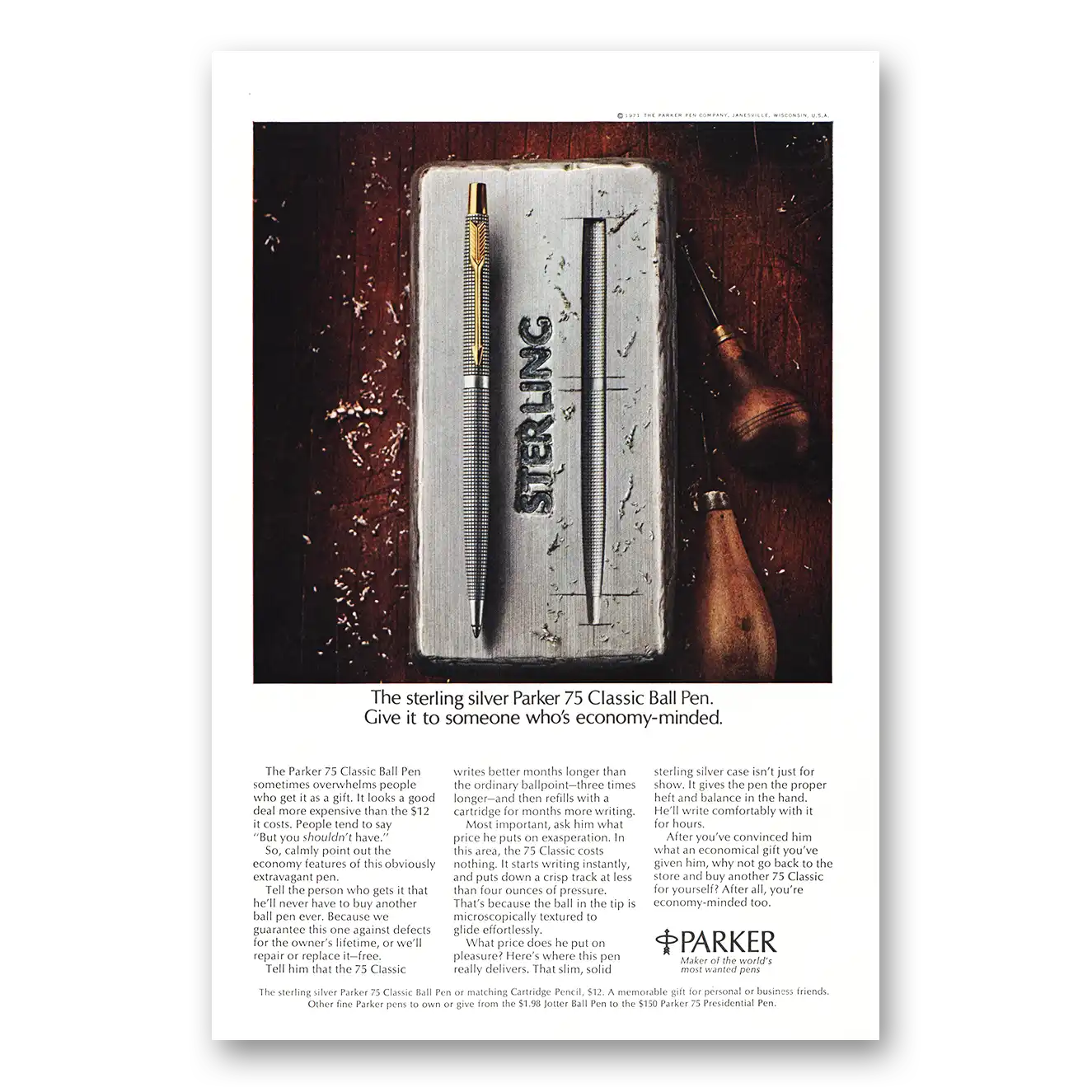 1971 Parker 75 Pen Print Ad | Sterling Silver
