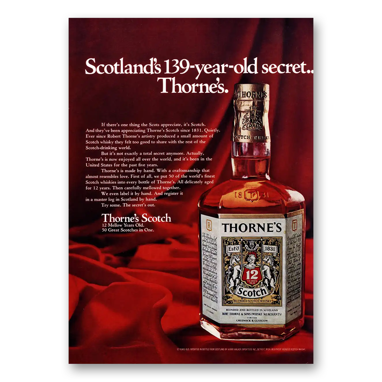 This is an original 1971 Thornes Scotch print ad published by Thornes Scotch.