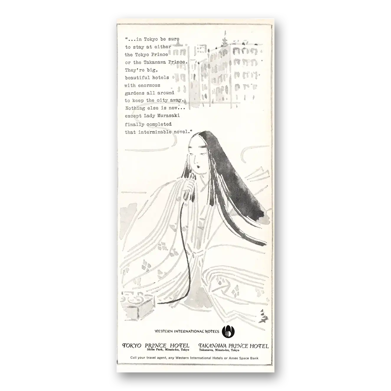 This is an original 1971 Tokyo Prince Hotel print ad published by Western International Hotels.