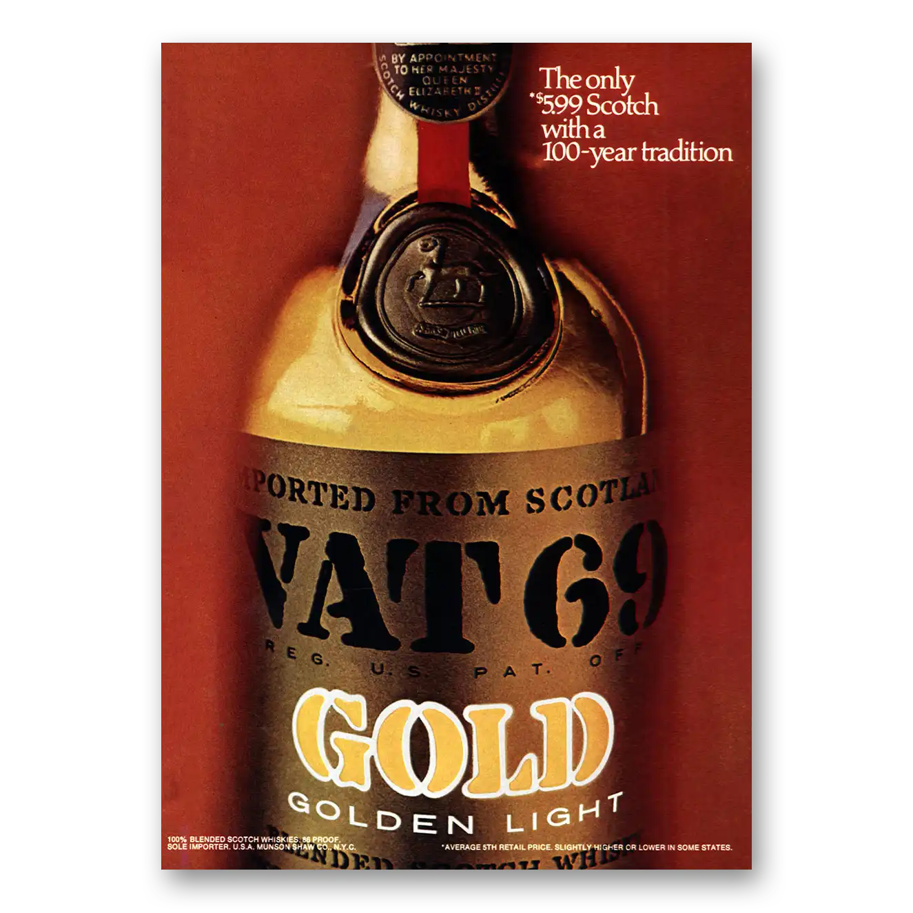 This is an original 1971 VAT69 print ad published by Munson Shaw.