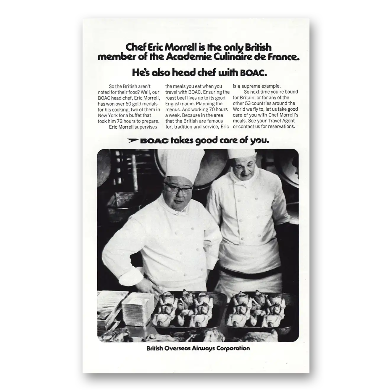 1972 British Airways BOAC Print Ad | Chef Eric Morrell