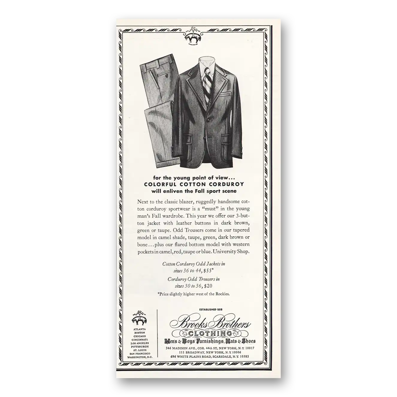 1972 Brooks Brothers Print Ad | Colorful Cotton Corduroy